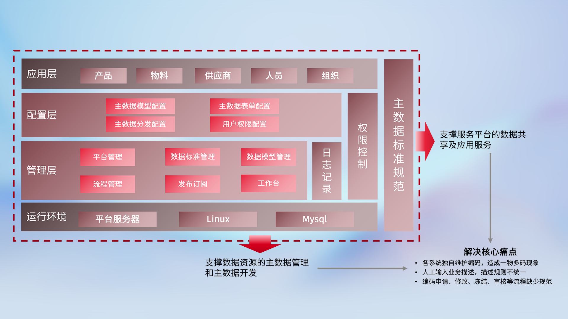 消除数据孤岛:通过集中管理主数据,,,打破不同系统间的数据孤立,,,,确保数据在各业务系统间的共享和一致,,,提升跨部门协作效率。。